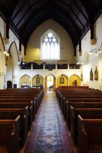 On the first floor, overlooking the atrium, of this modern hospital. It is a small irregularly shaped room with an altar and some coloured glass in the only windows. The hospital was built between 2004-2006 and was designed by Jonathan Bailey Associates.