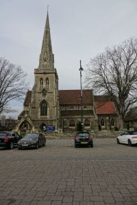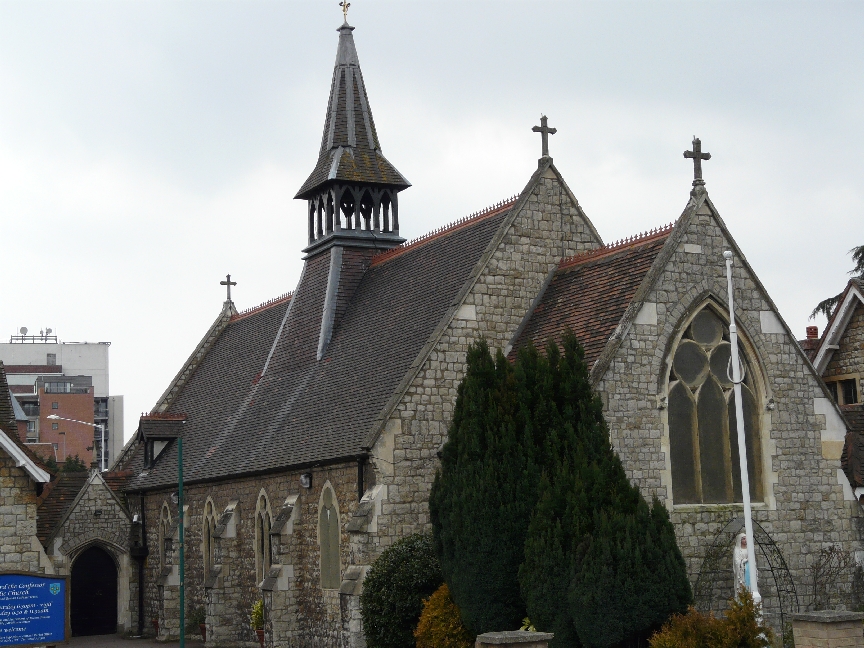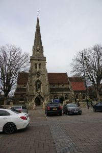 North west of Romford town centre is the former parish church of St John. It was designed in a byzantine style by W.D. Caroe in 1927 but only the sanctuary was built, it was completed in 1932 by Herbert Passmore with a west wall by Laurence King in 1979. It was declared redundant in 2010 and was in the hands of The Redeemed Christian Church of God on my first visit in 2013. In January 2020 it is used by Triumphant Chapel/Christ Heritage Assembly based in Barking and the grounds are padlocked.