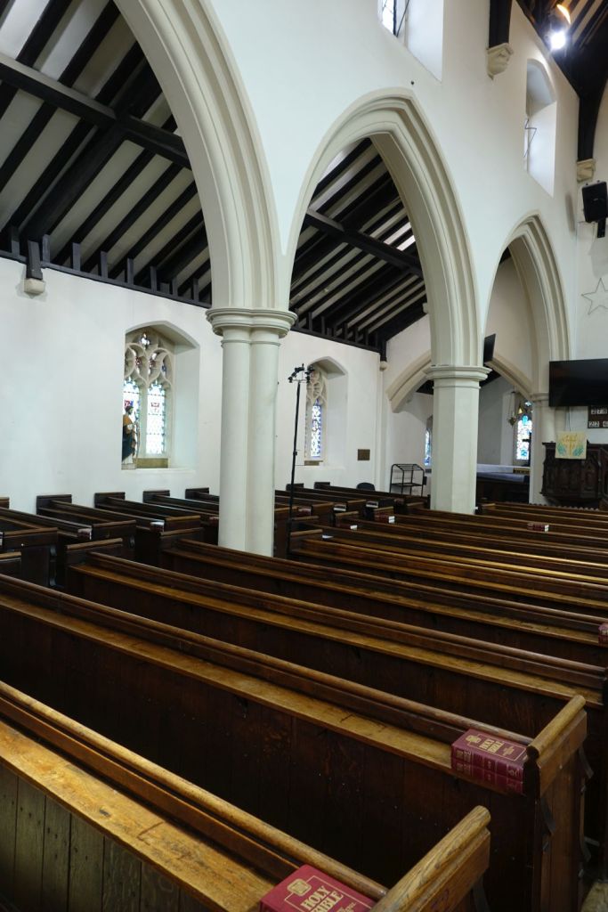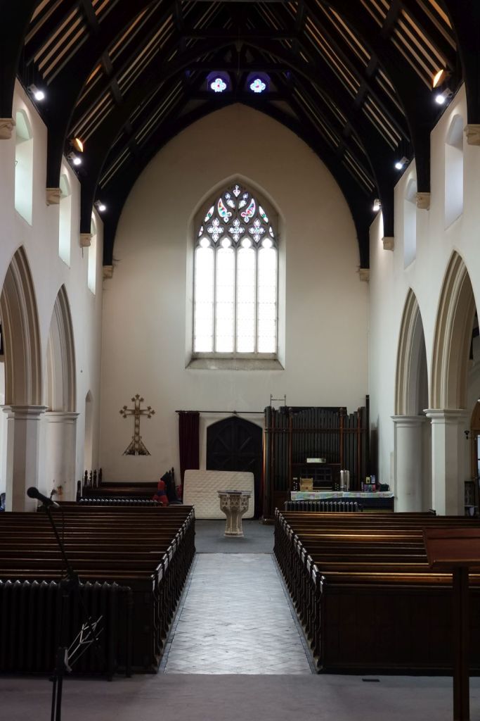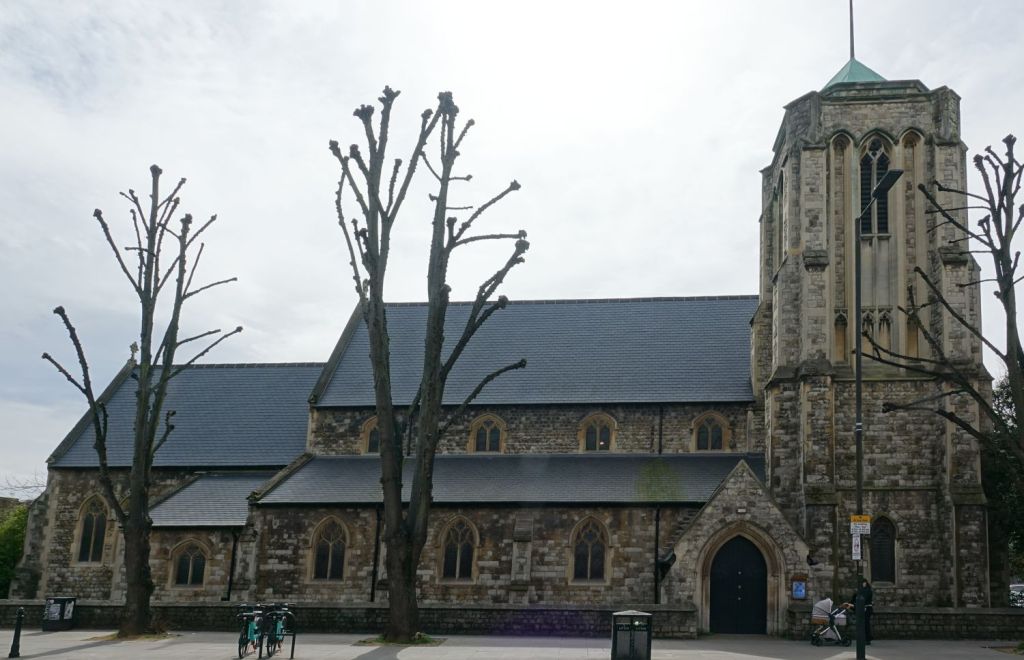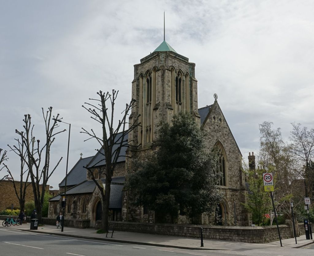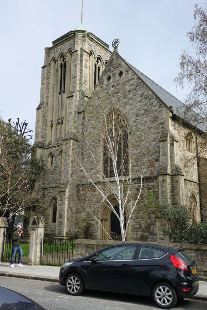 Part way up the hill from Tooting Bec towards Wandsworth Common. The church is by Anthony Salvin from 1854-55. The tower and north transept were added by Benjamin Ferrey in 1860. He widened the north aisle in 1889. The south aisle that had been widened in 1893 is now divided off as a hall. The wall paintings of 1906-13 by Richard Castle are awaiting restoration.