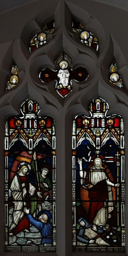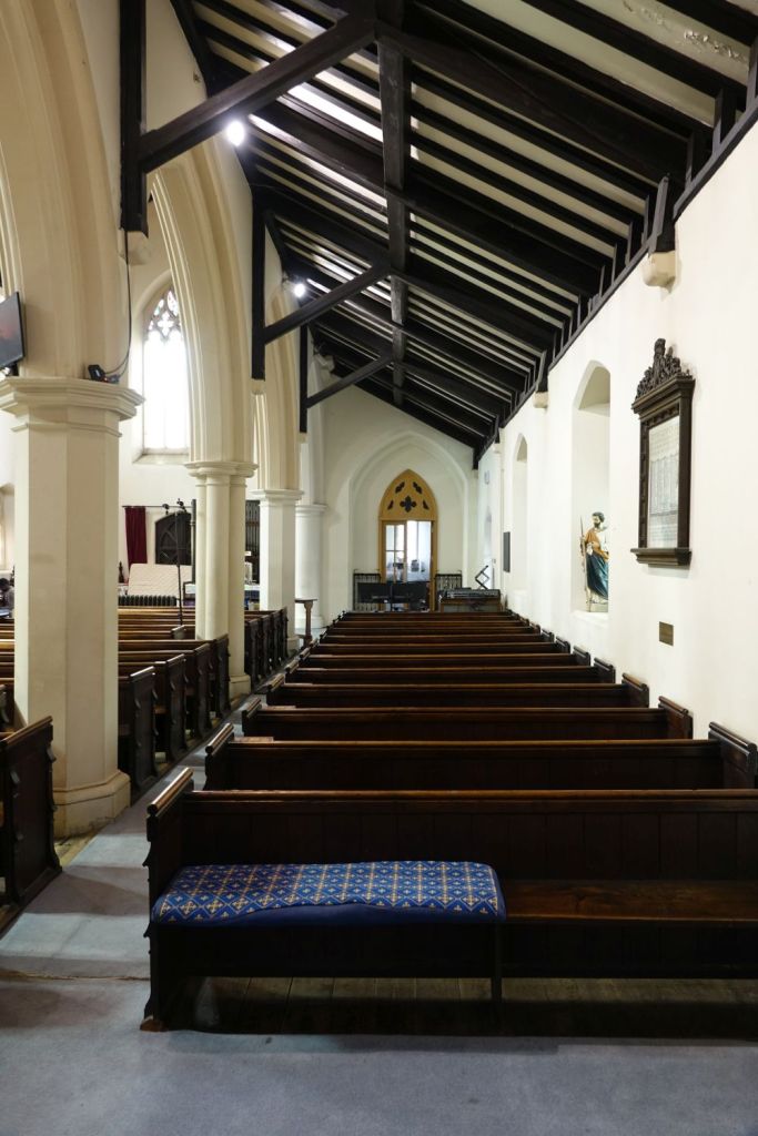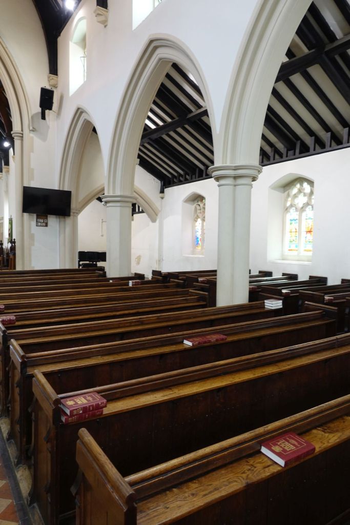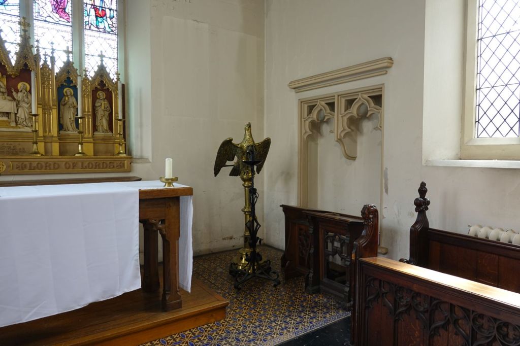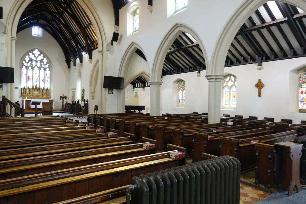 Part way up the hill from Tooting Bec towards Wandsworth Common. The church is by Anthony Salvin from 1854-55. The tower and north transept were added by Benjamin Ferrey in 1860. He widened the north aisle in 1889. The south aisle that had been widened in 1893 is now divided off as a hall. The wall paintings of 1906-13 by Richard Castle are awaiting restoration.