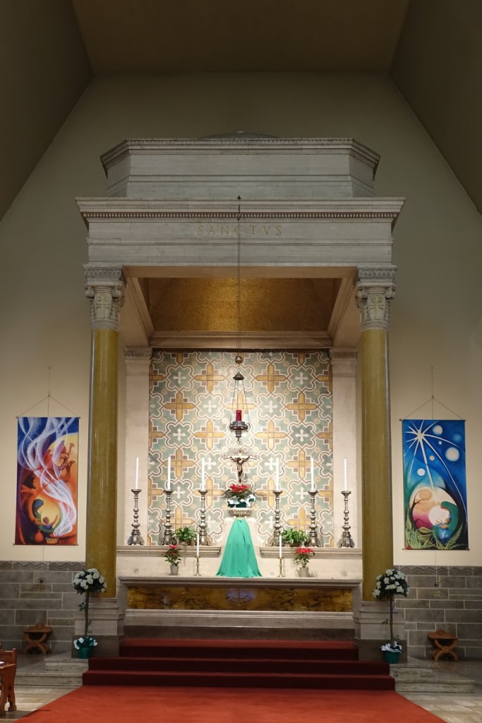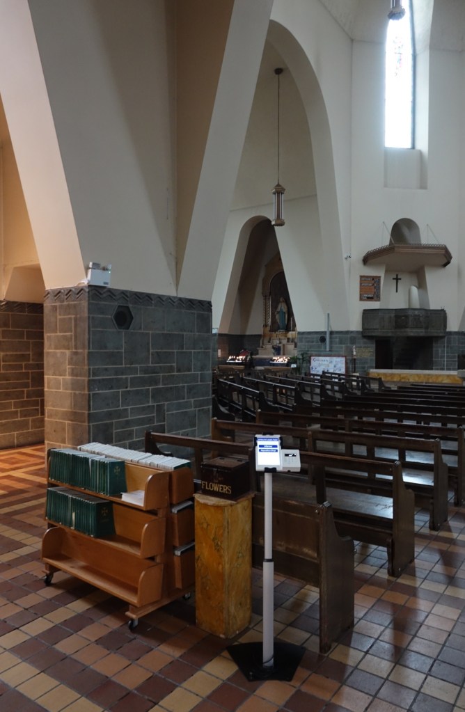 Very close to Wimbledon Park tube station, it is a low building of 1928 by Adrian Scott. The body of the church is sunken and accessed by two short flights of steps.