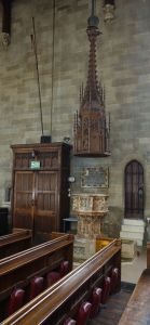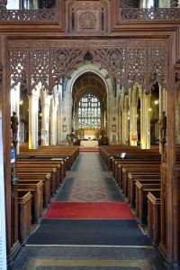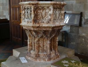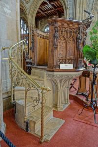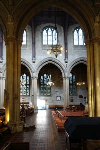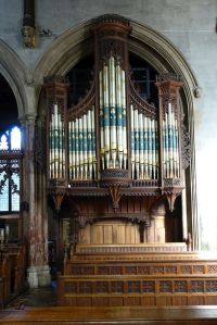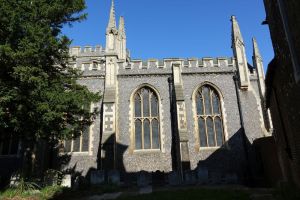 A large church, largely of the 16th century, but some blocked windows over the north aisle arcade shows evidence of an earlier building. A covered walkway links the south door to the street, this was rebuilt in the 19th century. When I visited in 2013 it was derelict but has been restored as part of the project to add vestries, offices, etc to the western end of the south aisle. The church was restored in 1847-1849 by George Dyson and George Gilbert Scott and later in 1892-1894 by C.C. Winmill. There are many monuments, unfortunately, the large ones are part hidden by stored items.