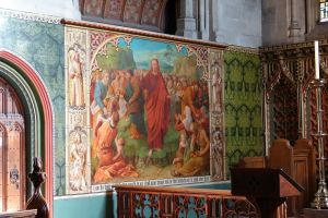 Croydon parish church, but in a backwater away from the main shopping area. The old church was destroyed by fire in 1867. The current church is a rebuild with an eastward extension, by George Gilbert Scott in 1870. All that remains from the old church is the south porch and the tower, apart from the pinnacles which were added by Scott. The former palace of the Archbishops of Canterbury is at the east end of the churchyard and several of them are commemorated in the church.