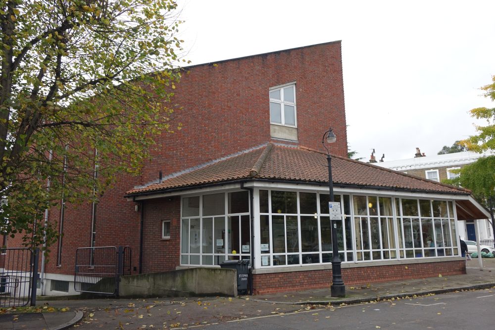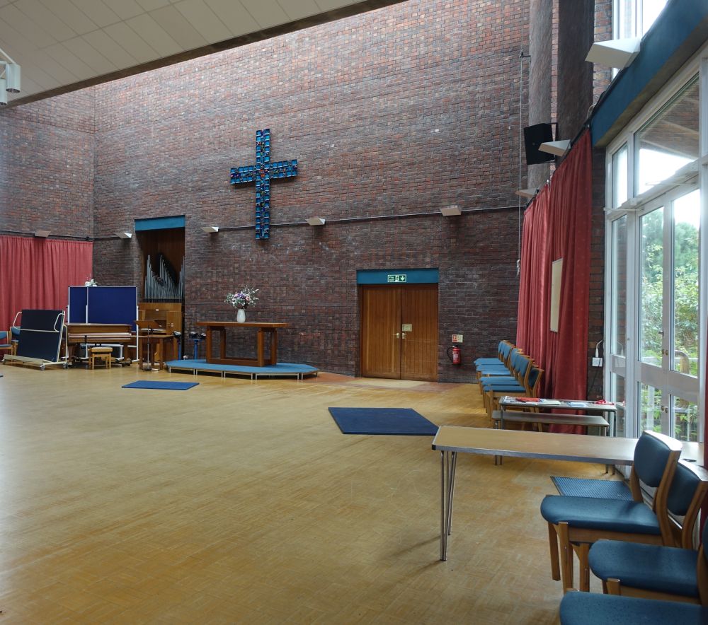 Built as a private chapel in 1793, the chancel and tower were added in 1874 by R. Parkinson. There were alterations after war damage and the church now occupies the upper level, with the lower being a hall. The interiors were taken prior to a Seventh Day Adventist service so the sanctuary arrangements are slightly changed from Anglican use. One station is missing as it was behind a large sign board. The monuments and small alter are in a lobby at the top of the stairs leading to the church area.