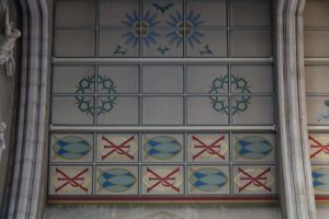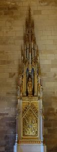 The original building was by A.W.N. Pugin and dated from 1841-48, but was under-financed and never completed to Pugin’s vision. However WW2 brought severe damage leaving only the aisle walls and east end, the rest is a post-war rebuilding by Romilly Craze from 1953 to 1966. Some Pugin fittings survive in the Blessed Sacrament chapel and the Knill chantry is by E.W. Pugin. Craze’s design added a clerestory and a new Lady Chapel.