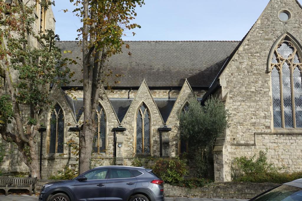 Tooting parish church, close to St Boniface, it sits in a large churchyard. The building is of 1833 by T.W. Atkinson. A chancel was added in 1873-75 and transepts in 1889, both by J.P. St Aybyn. The interior has been subdivided and the chancel, transepts and east end of the nave form the worship space, the rest is hall and offices. There are a few monuments from the older parish church that this building replaced.