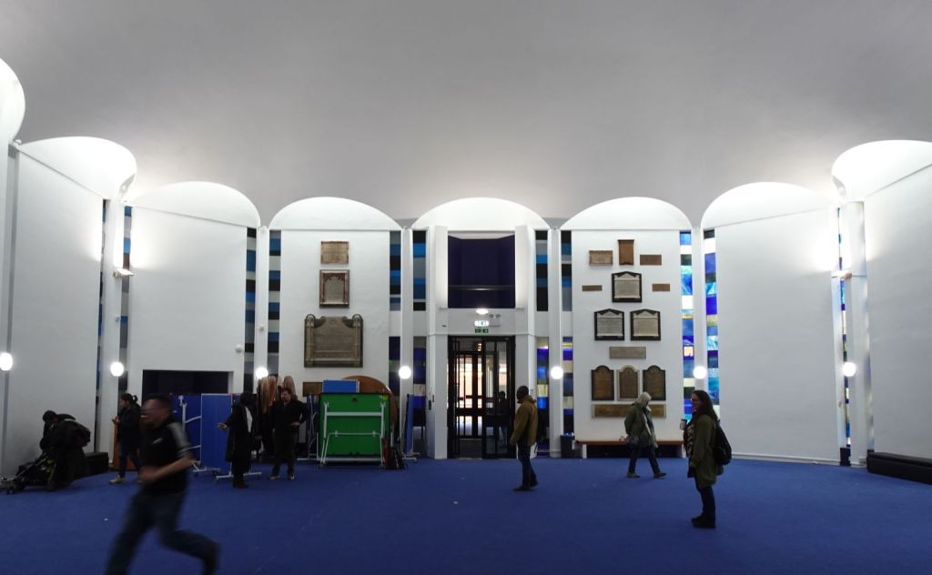 It sits facing Bryanston Square but the interior is at right angles to the portico It was designed by Robert Smirke 1821-23. The interior can be seen through glass doors hence any reflections visible in the interior shots. The shots with a white east end and screens are from 2014, those without are from 2018.