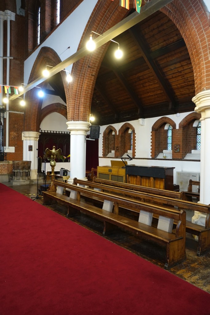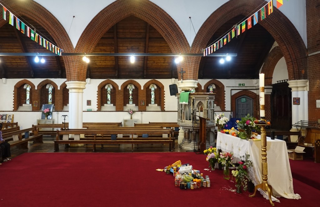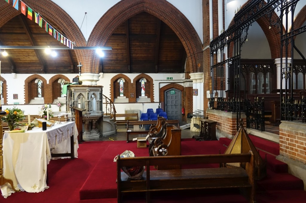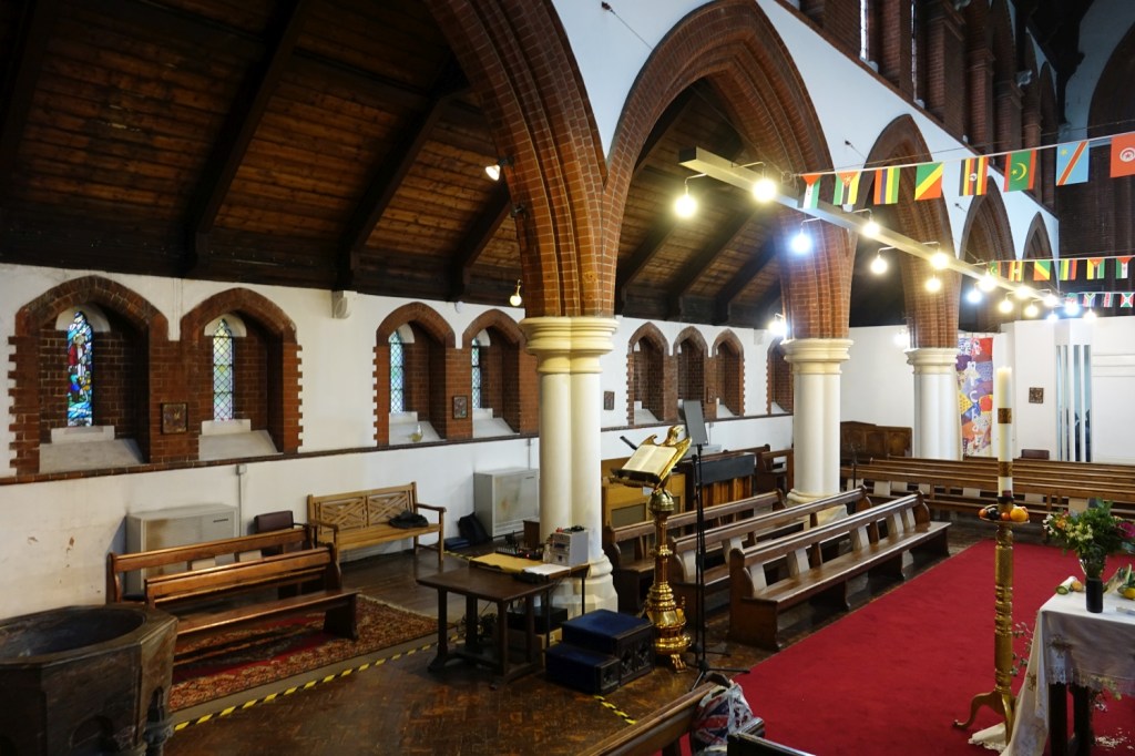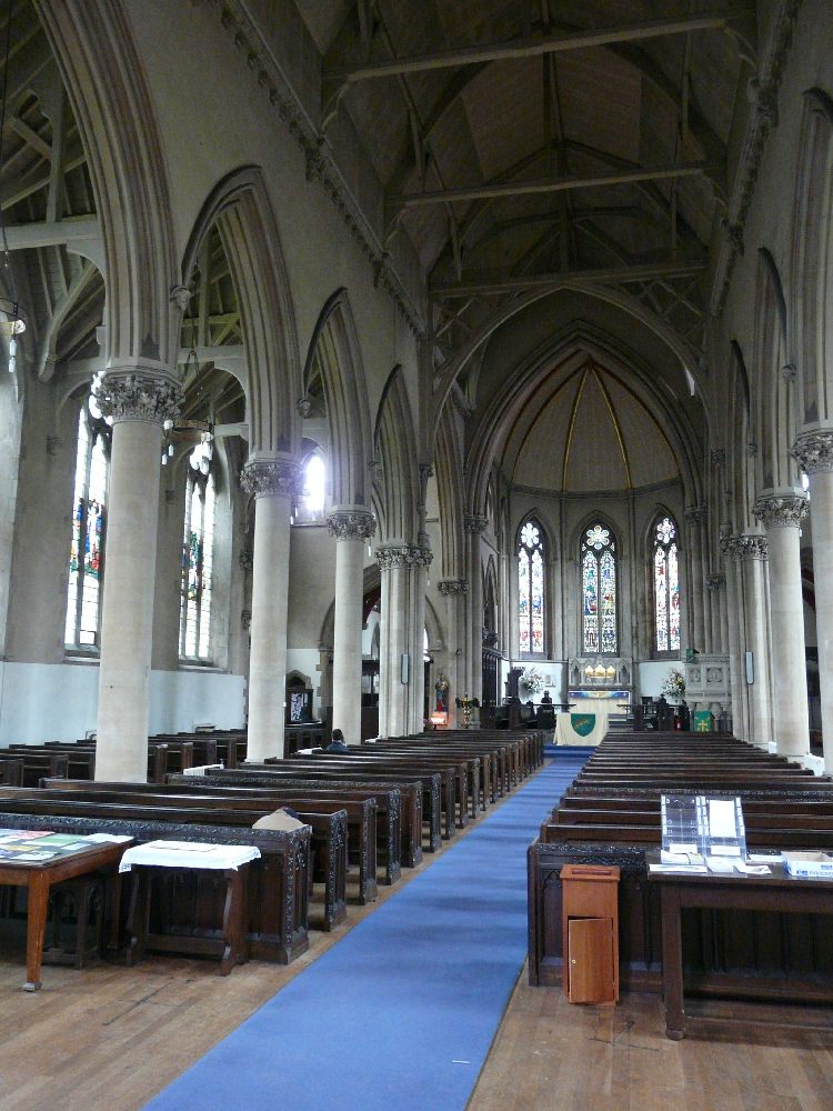A church of 1883-85 by J.E.K. Cutts on the eastern edge of the common. The western bay was divided off in 1972. The 19th-century glass is by Heaton, Butler & Bayne. The Stations are hung as haphazardly as the images show, they are interesting in that they reflect the fact that the church has a largely Afro-Caribean congregation.