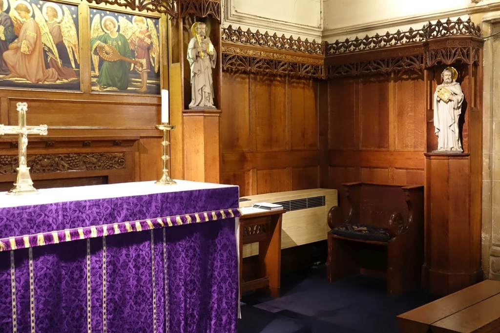 A short way north of Sutton town centre, so far I have no information on this building which sits in a compound. An interesting feature is the external Stations of the Cross.