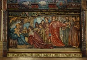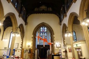Famously shown in a painting by Pissarro. The church was designed by Lewis Vulliamy and built in 1827-32. In 1852 Edwin Nash added the chancel and in 1883 he widened the north aisle, most of which is now partitioned off as a hall area. The reredos was added by Henry Wilson in 1905.