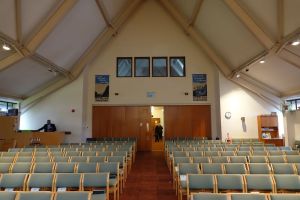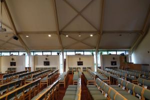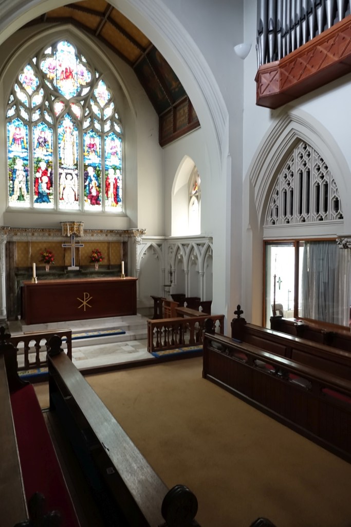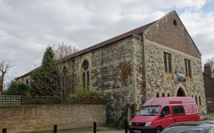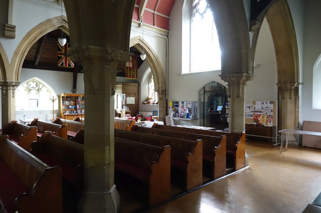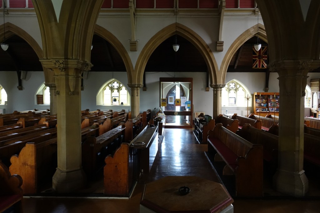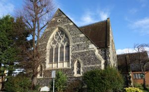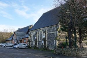 A short way north of the town centre. The original church of 1851-1852 by S.S. Teulon, having closed in 1978 was badly damaged by fire in 1985 leaving the west end of the nave to be incorporated in a new building of 1991 by Maurice Taylor. The old church section is now a hall and the newer section, the worship area.