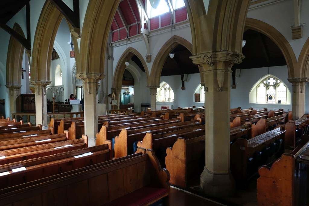 In a commanding hill-top position as you come north out of Sutton. It is by S.S. Teulon and dates from 1863-66. Most of the 19th-century glass was destroyed in WW2 and has been partly replaced by glass by John Hayward and Goddard & Gibbs. In the 1980s the church was struck by lightning, damaging some of the chancel and Lady Chapel but the damage has been restored invisibly.