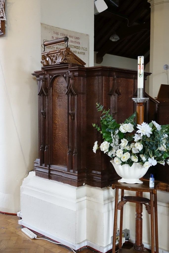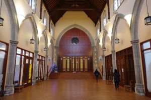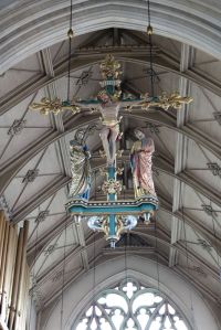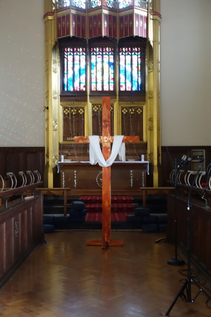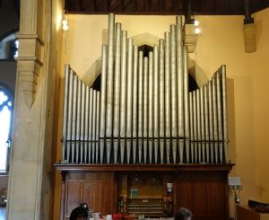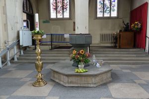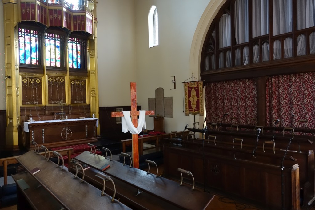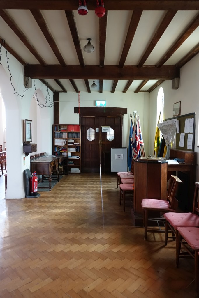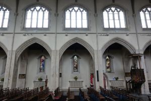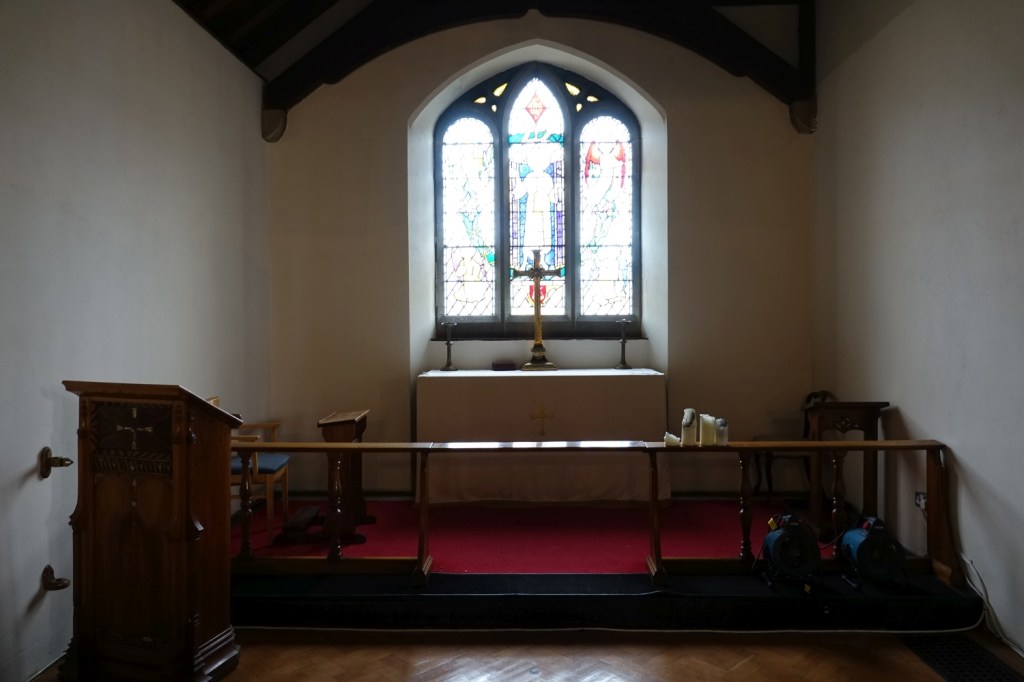 Built in two campaigns – 1871 and 1900 and ascribed by the diocesan website to Richard Norman Shaw. The church is now divided with the nave being used as a hall (though it can be opened out into the eastern parts) and the eastern parts as a church. The aisles are also divided off into other ancillary rooms, several stained glass windows are in toilets and the kitchen.