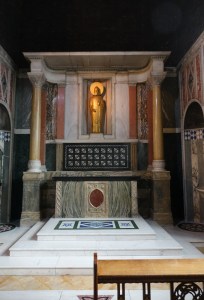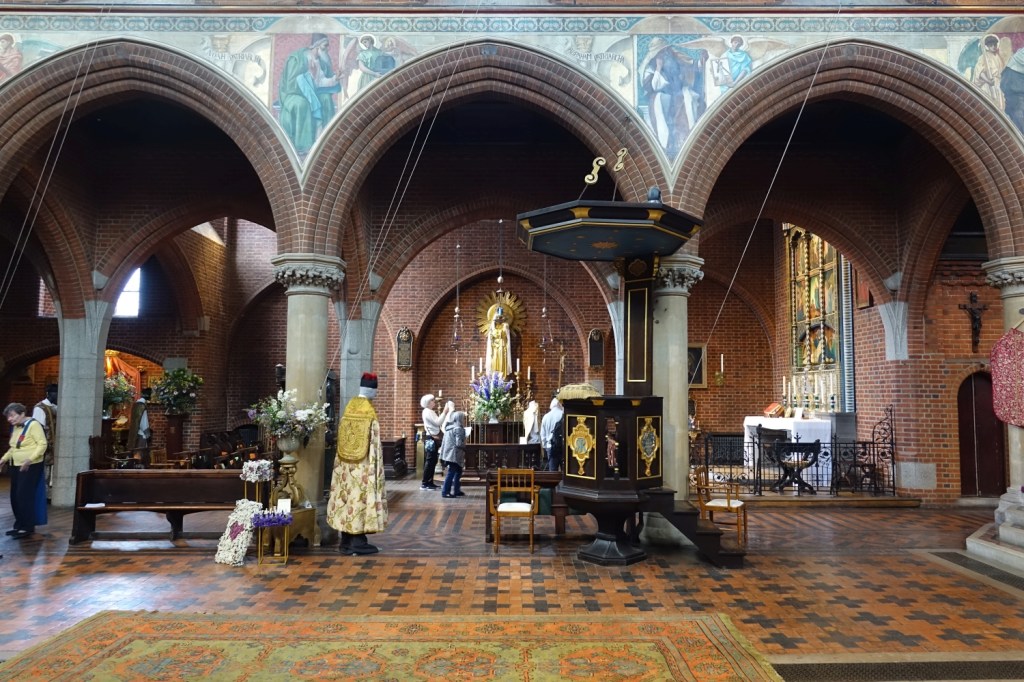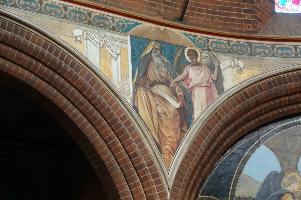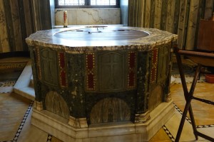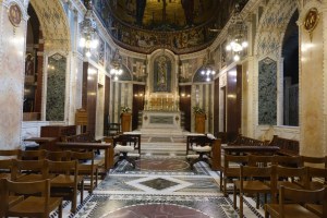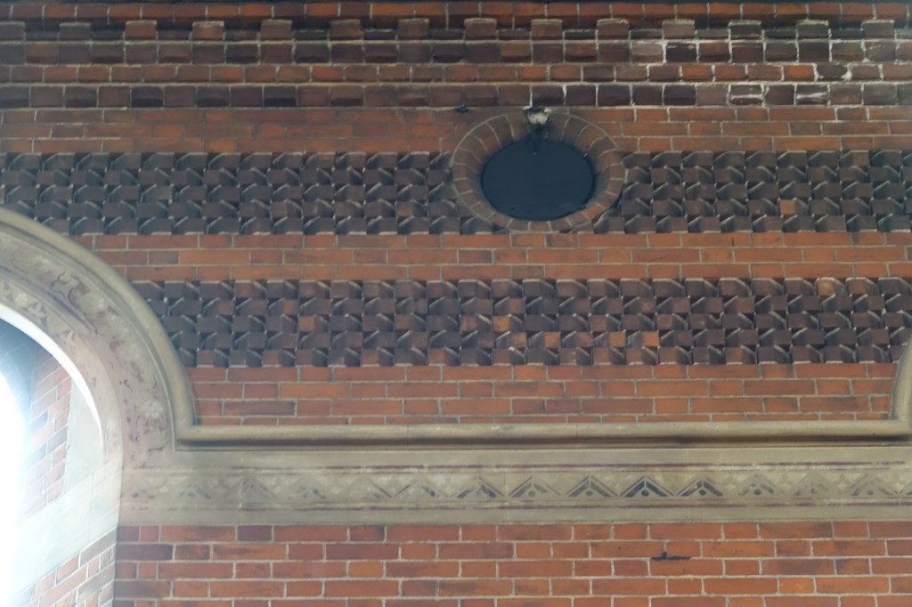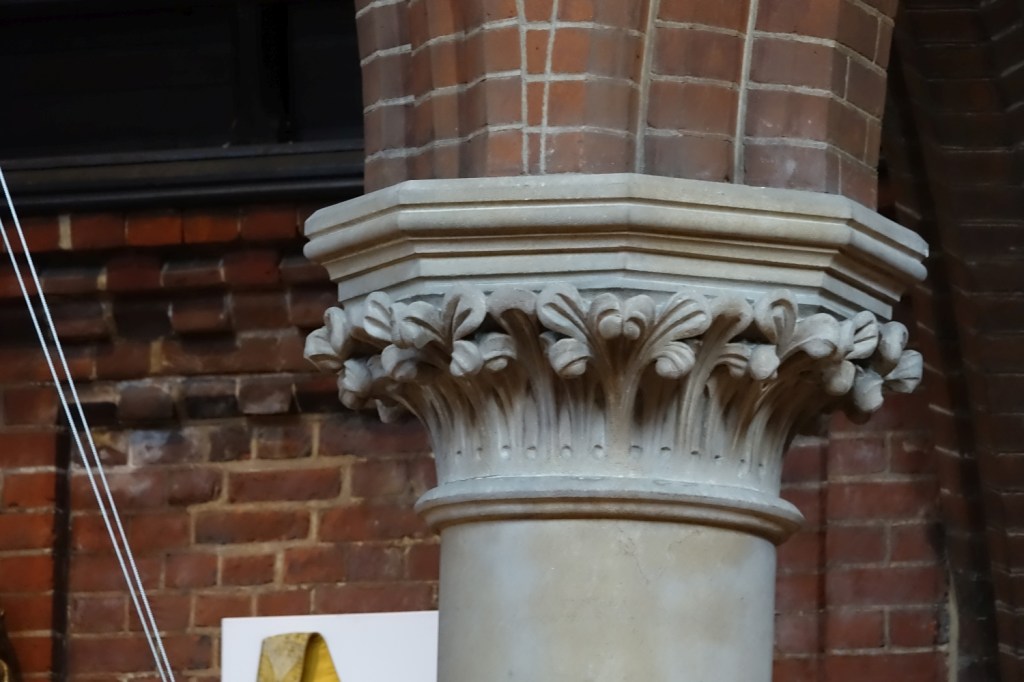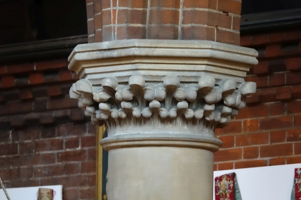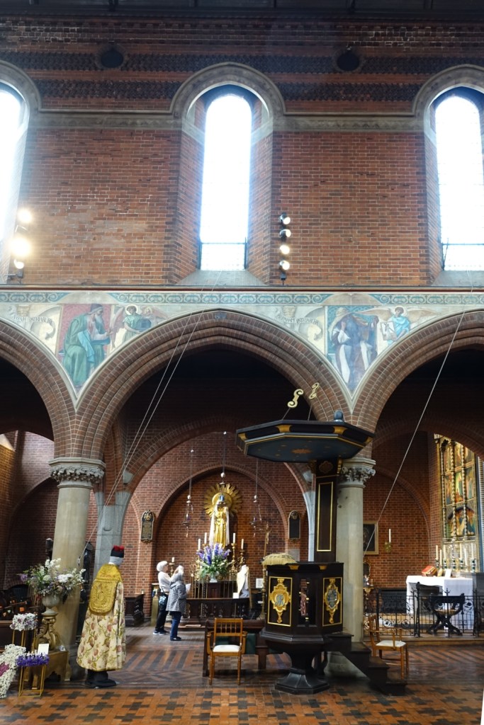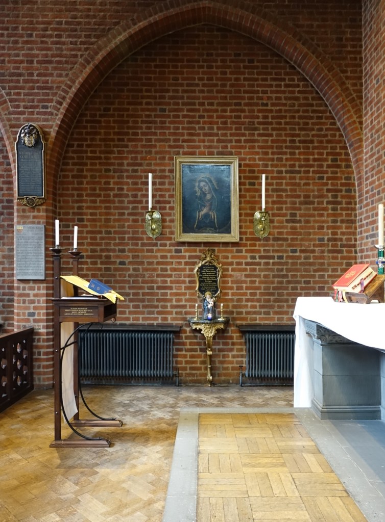 Its entrance is hidden away behind buildings, designed by R.J. Withers in 1873-74. The porch was added by H.S, Goodhart-Rendell 1925-28. It is a centre of high church Anglicanism. These images were taken during an exhibition of vestments and most of the nave seating had been removed.
