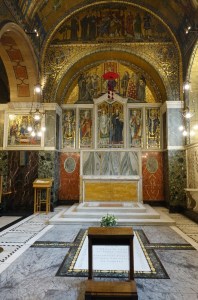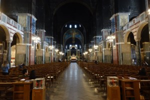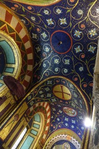 The premier English & Welsh Roman Catholic church. It is the neo-byzantine masterpiece of John Francis Bentley built from 1895-1903, though much of the planned interior decoration has never been added. Some of the side chapels have been decorated during the 21st century but the upper areas of the nave remain powerfully bare. The lower areas are covered in a wide variety of marbles. The Stations of the Cross are by Eric Gill. It sits in front of a modern piazza on the southern side of Victoria Street.