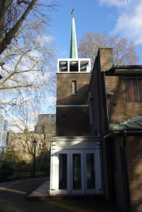 Facing Hammersmith Road between Olympia and Brook Green this is a small church of 1960-61 by Seely and Paget. It replaced a 19th century church badly damaged in WW2