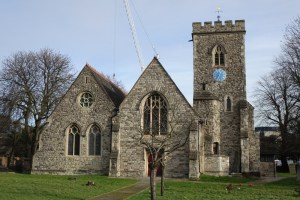 The 13th and 14th century medieval parish church of Willesden, away from the modern centre on the edge of a housing estate. The church was heavily restored and extended a bay west in 1852 by Thomas Little in 1852 and the north aisle was rebuilt by E.J. Tarver in 1872. There have been further restorations since.