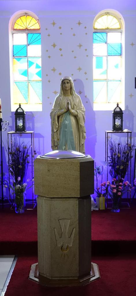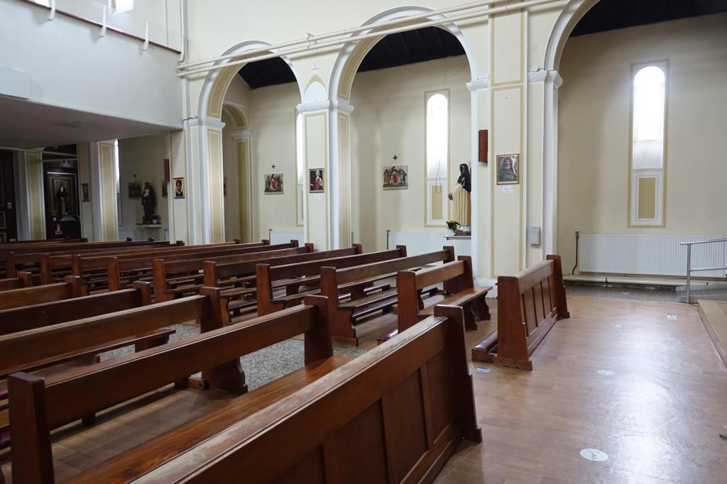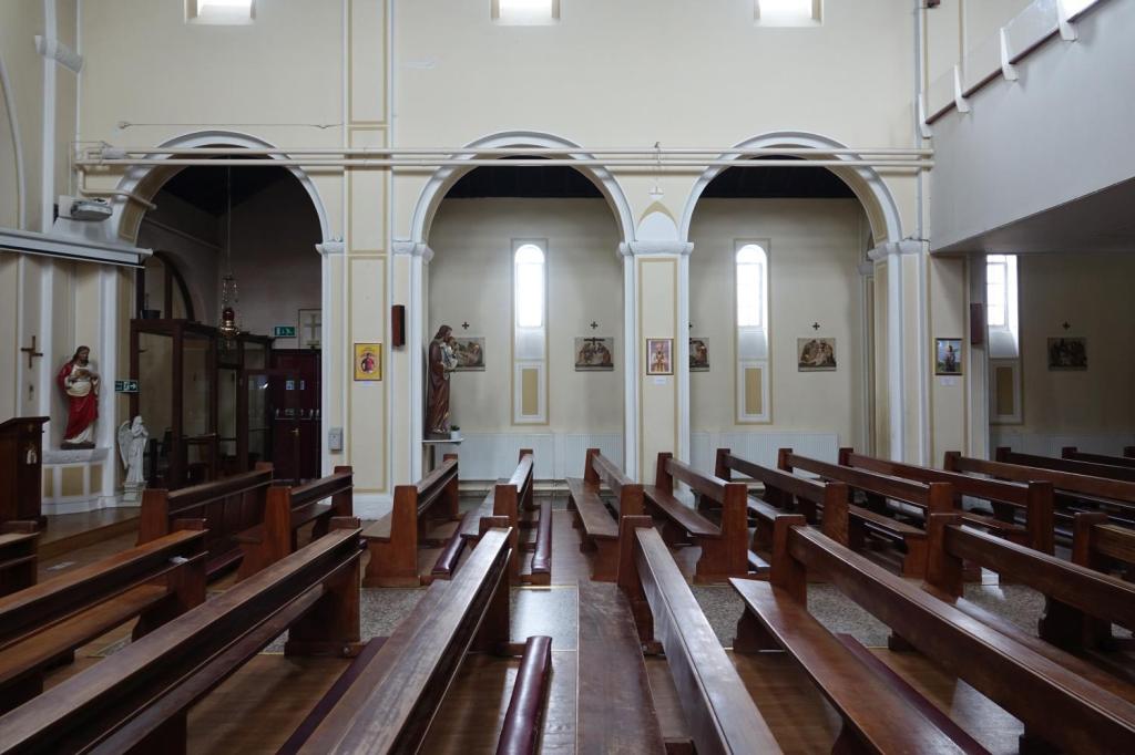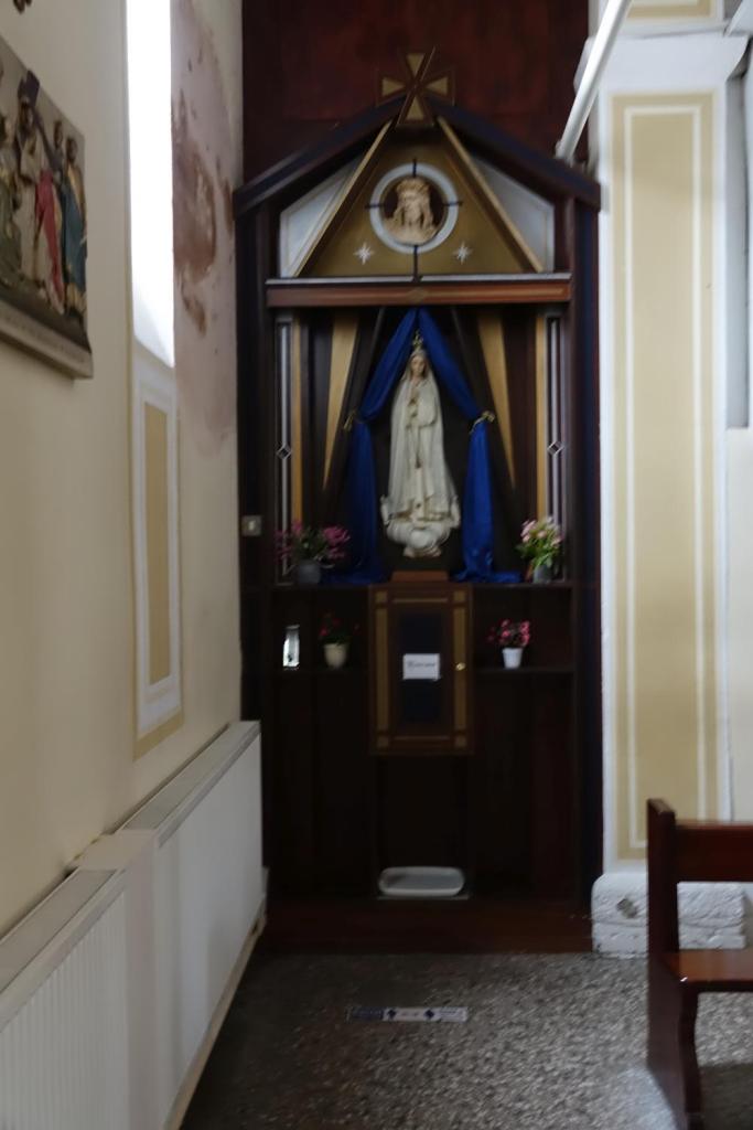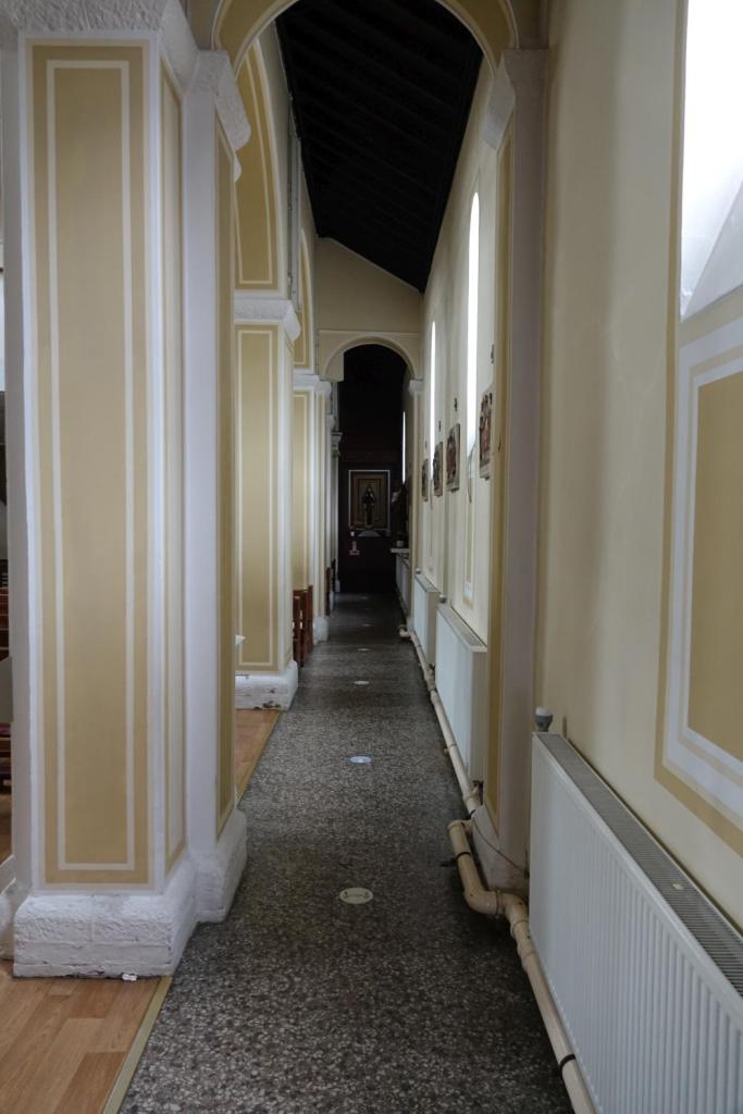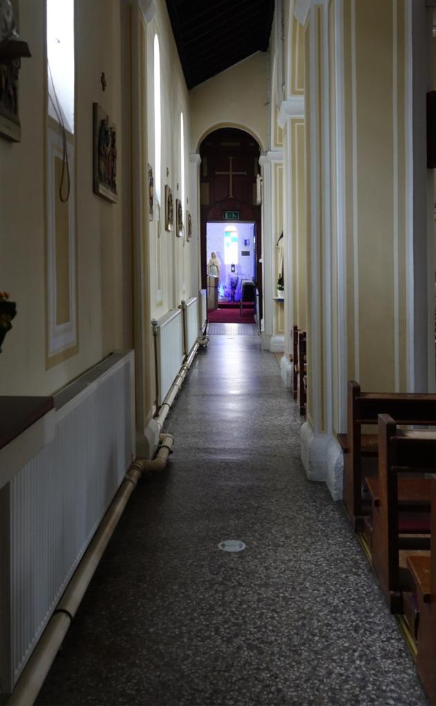 A typical 20th century Roman Catholic basilica by Benedict Williamson from 1908. The interior is rather dark with a small side chapel in a seperate room north of the chancel.