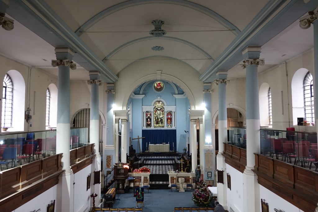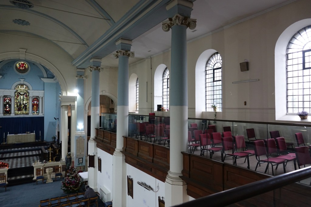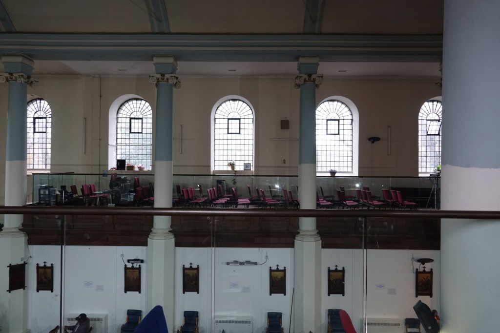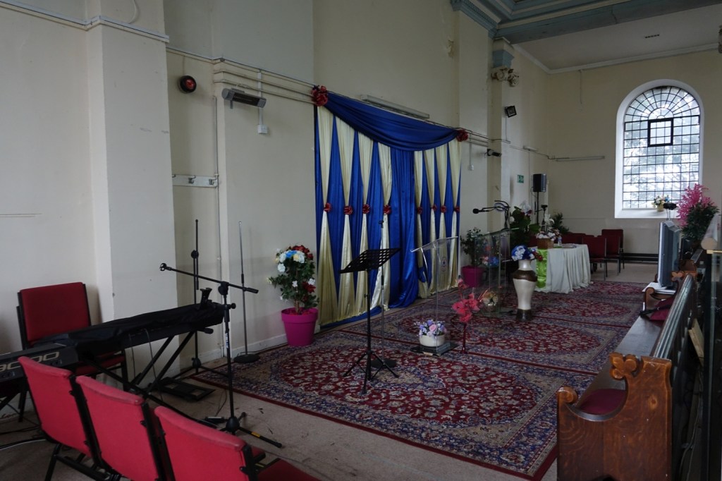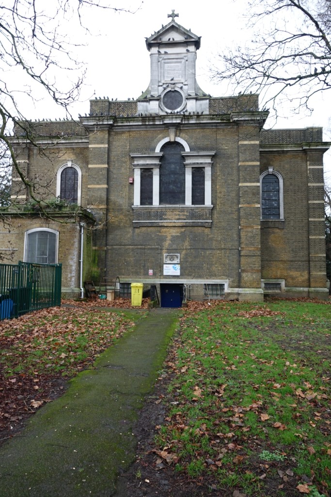 Sold in 2014 to a Ghanaian church called Church of the Pentecost UK. It stands high above Woolwich Dockyard station, the chancel is by J.W. Walters dating from 1875 to which the large nave was added in 1887-1889 by William Butterfield. In 1955 Thomas F. Ford added an aisle and a transept. Inside the chancel has been blocked off to create an office and storage area, but wall decoration and screens are intact behind the wall. I suspect there is a reredos, too but it was inaccessible on my visit.
