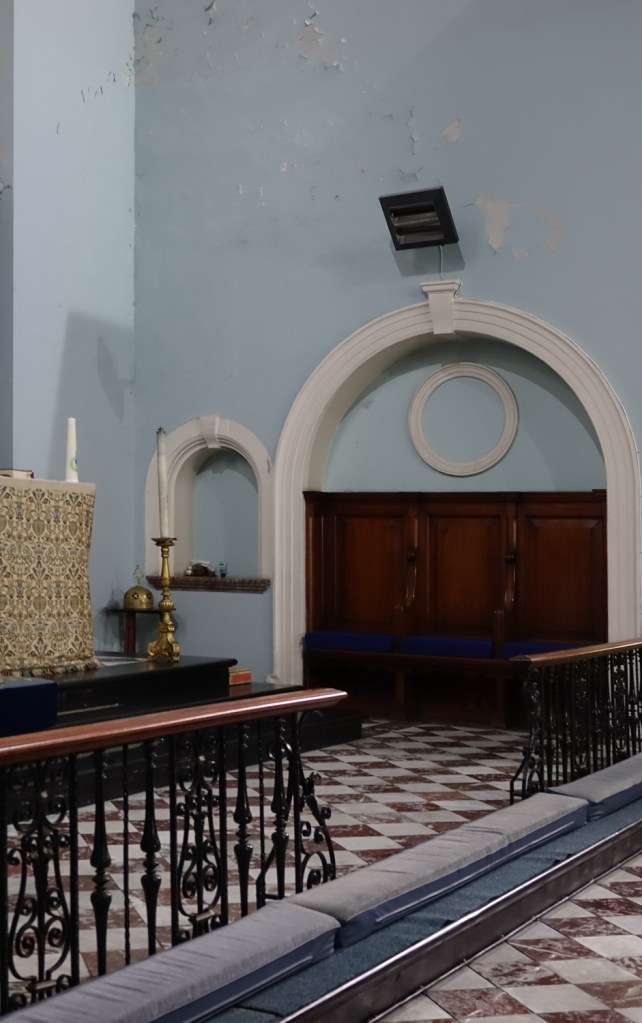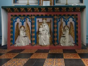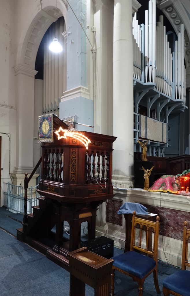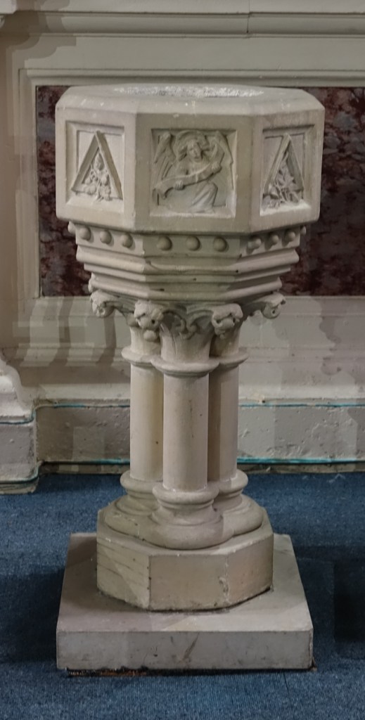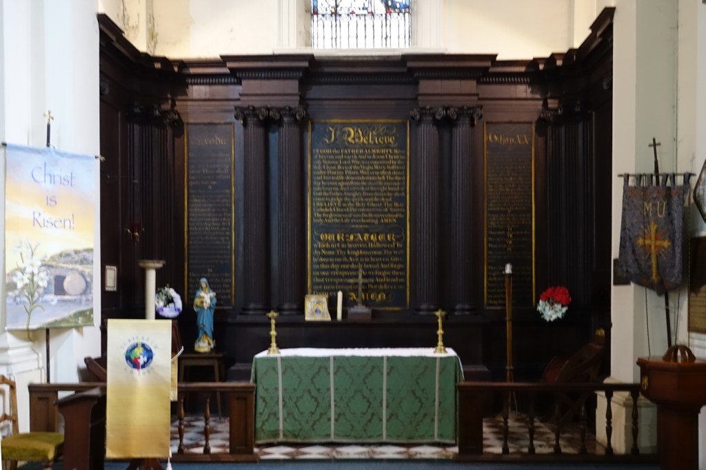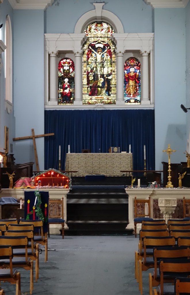 Sold in 2014 to a Ghanaian church called Church of the Pentecost UK. It stands high above Woolwich Dockyard station, the chancel is by J.W. Walters dating from 1875 to which the large nave was added in 1887-1889 by William Butterfield. In 1955 Thomas F. Ford added an aisle and a transept. Inside the chancel has been blocked off to create an office and storage area, but wall decoration and screens are intact behind the wall. I suspect there is a reredos, too but it was inaccessible on my visit.