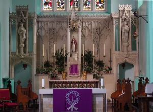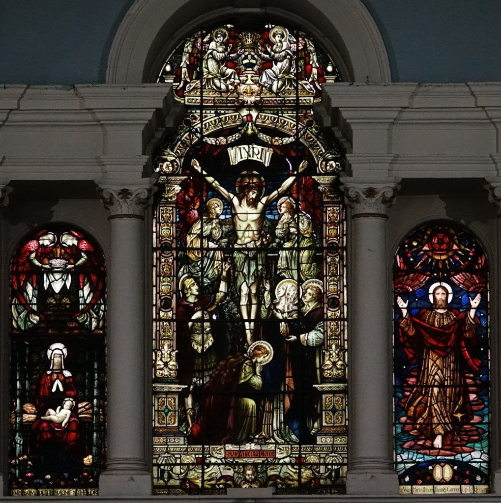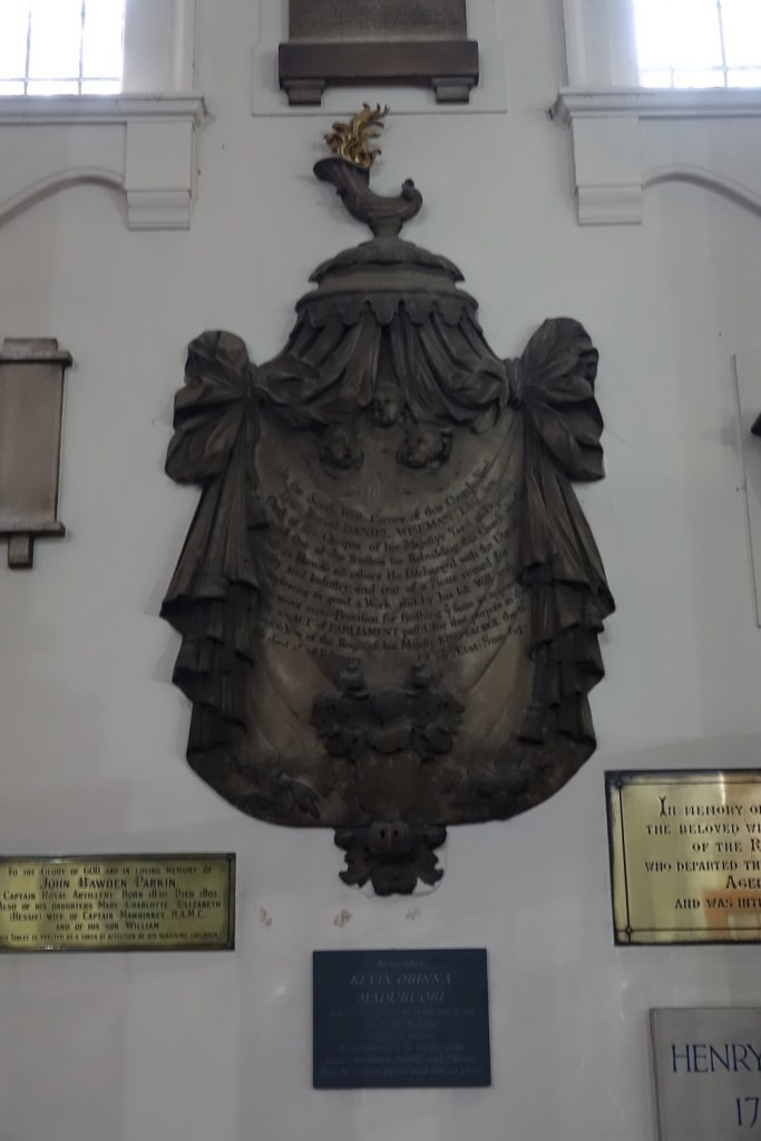 In a big churchyard high above and to the west of Woolwich town centre. It was built in 1727-1739, built but not necessarily designed by Matthew Spray. A chancel was added on by John Oldrid Scott in 1893-1894. Inside the aisles have been partitioned off for offices etc and the gallery area has modern seating facing west. The Stations of the cross come from the redundant St Michael’s church.