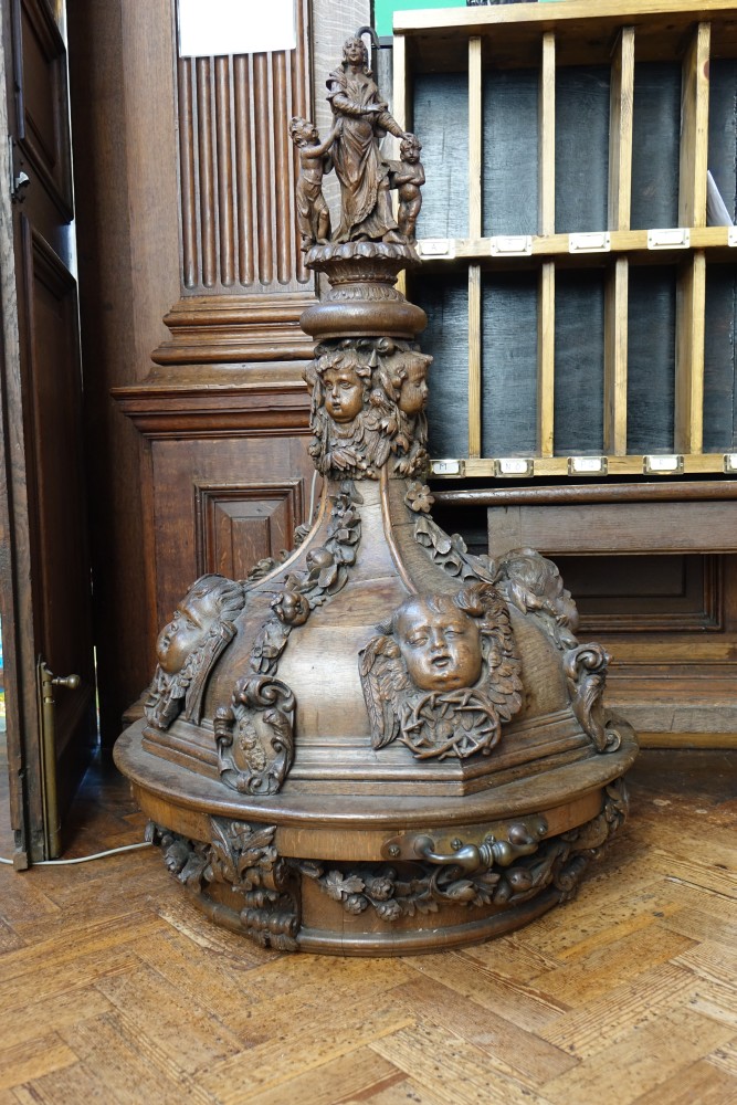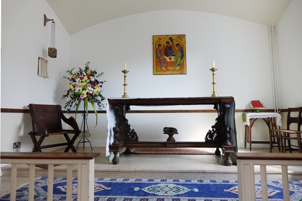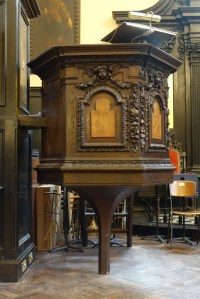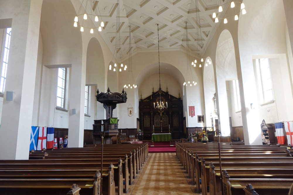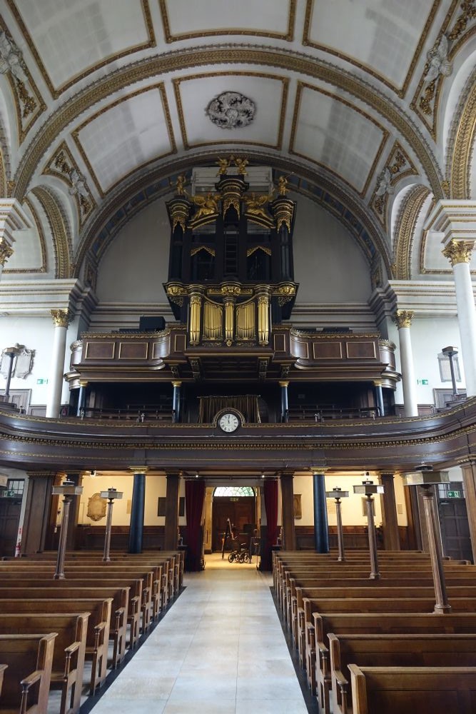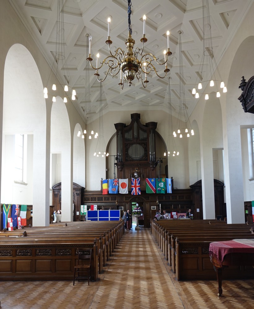 Part of the Queen Mary block of the hospital, it is a major work planned by Christopher Wren but construction was delayed and dates from 1735-1743. The chapel is entered up a high curved staircase from an entrance area that contains most of the monuments in the chapel. The interior was severely fire damaged and rebuilt by James Stuart in 1779-1789 in his Greek style.