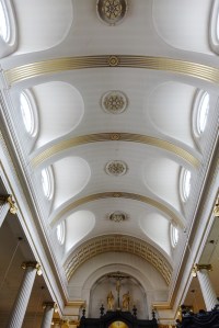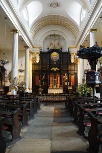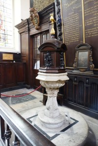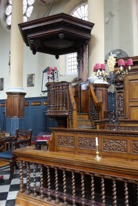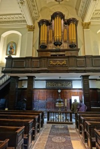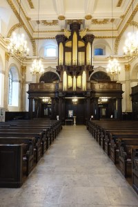 By Wren 1685-94 and restored after war damage by Marshall Sisson 1959-61. The galleries are converted to a library and the aisles to offices and rooms. Since September 2023 it has been used by a Coptic Orthodox congregation and there bare two tastefully added icons in front of the sanctuary n(see second set of images)