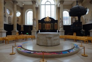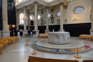 The RAF church sitting on an island near the Aldwych on The Strand. Christopher Wren’s church of 1682 was badly damaged in the second world war and rebuilt in the 1950s. A crypt runs at right angles to the church itself.